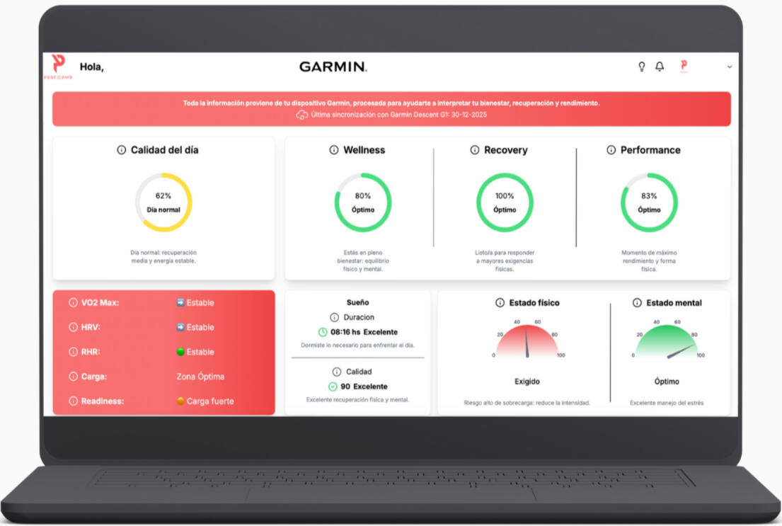 Recibe recomendaciones personalizadas: rendimiento, bienestar y recuperación.